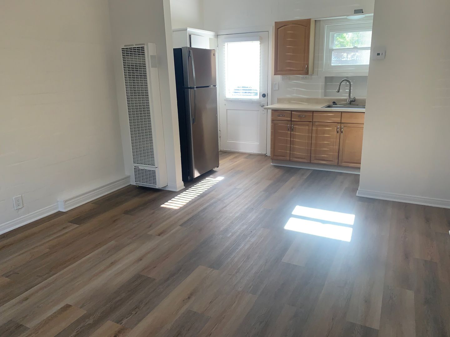 Enjoy easy downtown living in this downstairs one-bedroom, one-bath apartment. The unit features all-new wood-grain flooring throughout, a brand-new gas stove and refrigerator, and a full-size bathroom with tub/shower combination. There’s also a small outdoor area where you can make the space your own. Please note, there is no laundry on the premises.